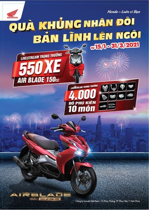 Đợt 1: 150 Xe máy Honda AirBlade 150 và 1050 Bộ phụ kiện xe Honda AirBlade.